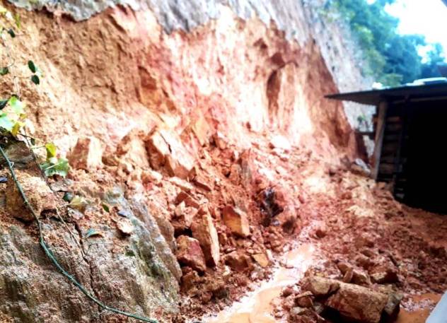 ನೇಸರ ಜು.16: ನೆರಿಯ ಗ್ರಾಮದ ಕುವೆತ್ತಿಲ್ ಎಂಬಲ್ಲಿ ರಾಮ್ ಕುಮಾರ್ ಅವರ ಮನೆ ಸಮೀಪ ಗುಡ್ಡ ಕುಸಿತ ಉಂಟಾಗಿದೆ. ಇನ್ನಷ್ಟು ಕುಸಿತ ಸಂಭವಿಸುವ ಸಾಧ್ಯತೆ ಇದೆ. ಹೆಚ್ಚಿನ ಕುಸಿತವಾದರೆ ಮನೆಗೆ ಅಪಾಯ ಸಂಭವಿಸುವ ನಿರೀಕ್ಷೆ ಇದೆ.